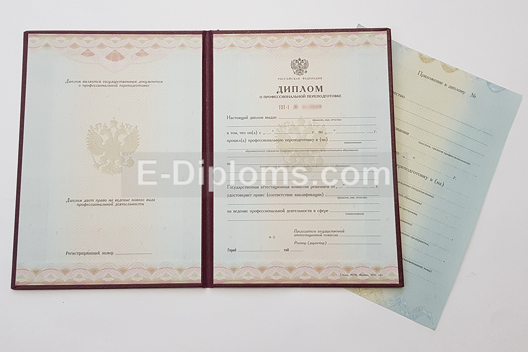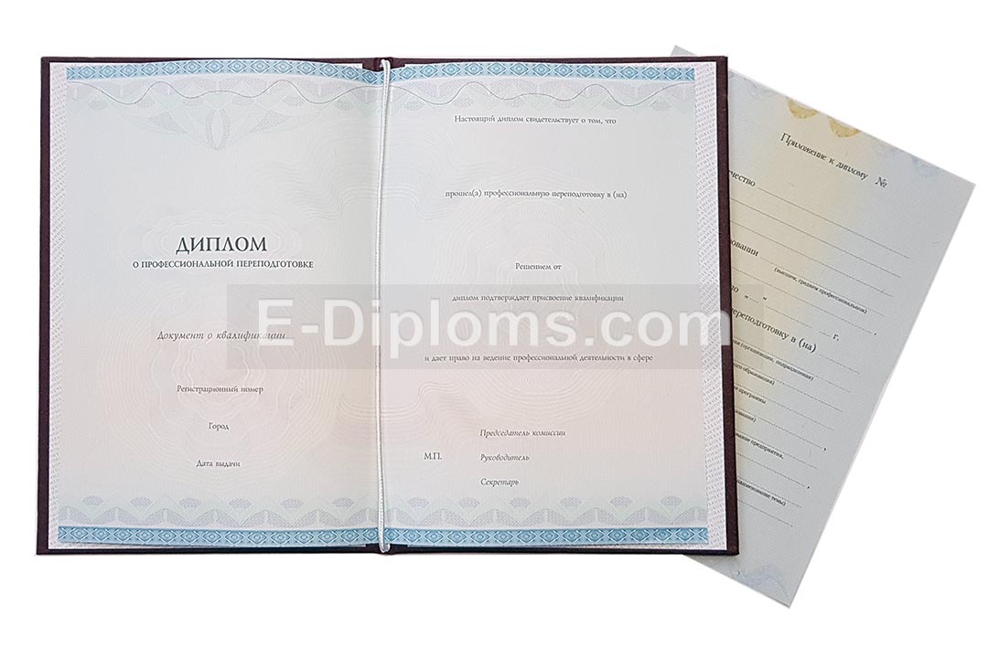 У нас на сайте Вы можете купить диплом о профессиональной переподготовке на бланке установленного образца. Выберите направление, исходя из Вашей профессиональной деятельности, укажите предыдущее образование, на базе которого выдаётся документ, а мы изготовим качественные корочки быстро, профессионально, анонимно. Доставка бесплатна, оплата при получении, для проживающих в регионах доступна услуга «макет», есть скидки. При заказе до 14.00 привезем уже завтра!