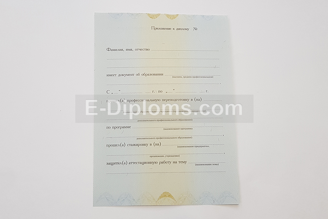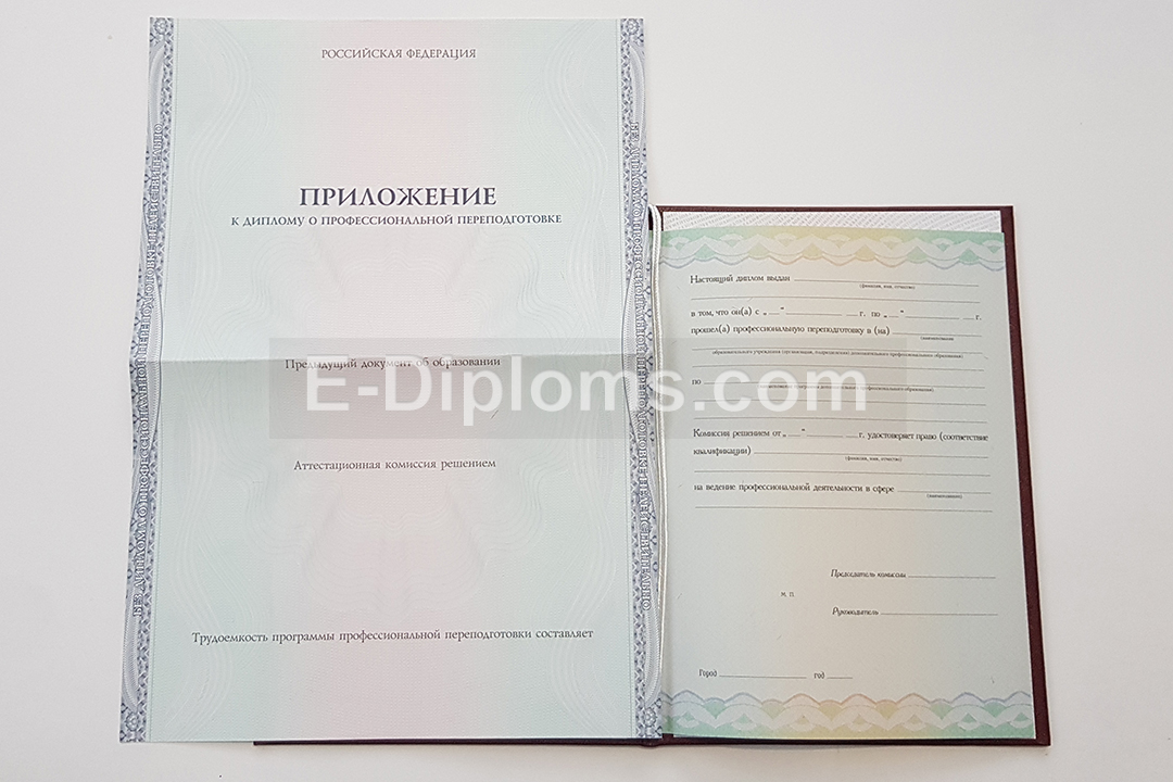 Документ изготавливается на бланках установленного образца. То, как будет выглядеть Ваш диплом о переподготовке определяется имеющемся в наличии образцами. Более подробно Вам расскажут наши специалисты. Есть старые и новые дипломы — до 2013 и с 2014 года, соответственно.